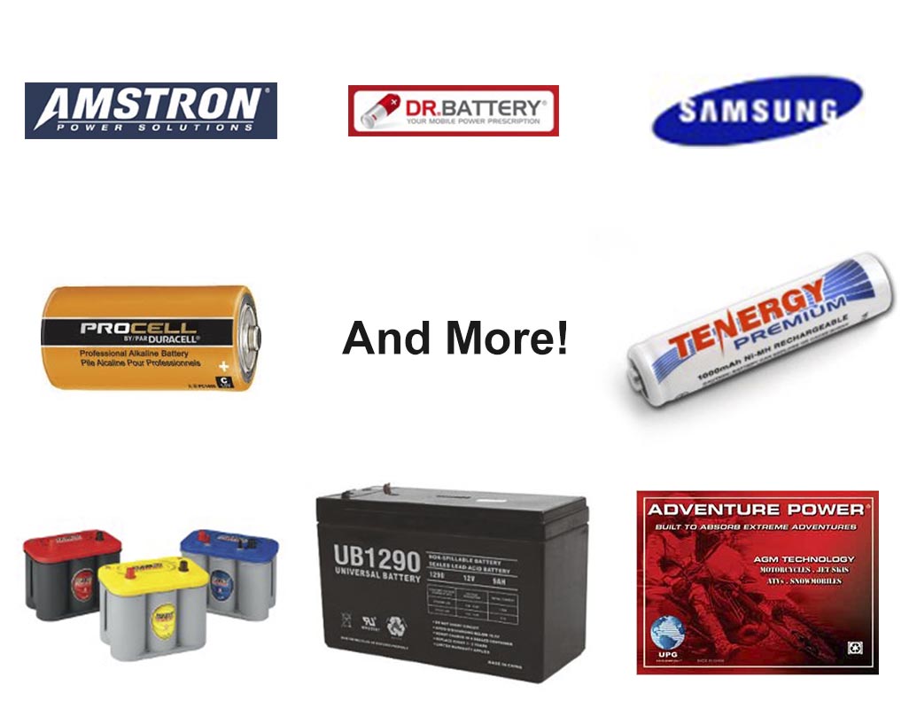 Check with us for laptop and cell phone batteries, camera and gps batteries. Radio and flashlight batteries, coin and watch cells. We are well stocked with Alkaline single use batteries, and NiMH Rechargeable cells (AAA, AA, C, D, and 9V) . We also have many chargers and maintainers. Let us get fresh juice for your power sport machines and your power tools. We can custom build battery packs of many kinds.